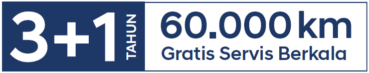 Gratis jasa dan suku cadang servis berkala 4 tahun /60.000 km, mana yang tercapai terlebih dahulu.